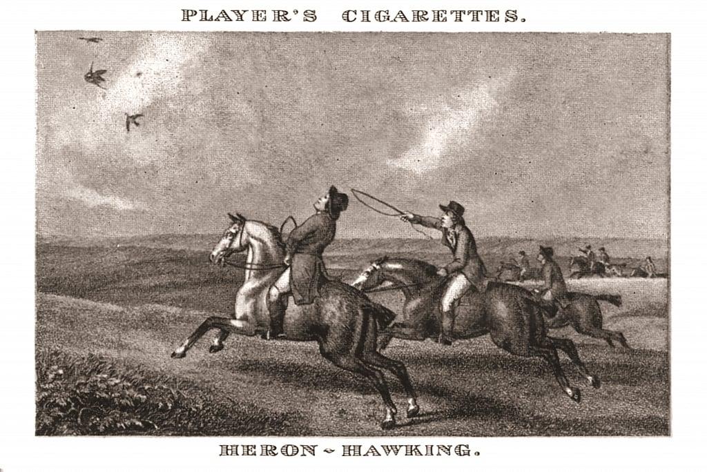 Heron hawking, reproduction of a miniature in the 14th century manuscript