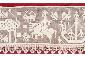 Horizontal panel worked with falconers, Italy, late 16th and 17th century