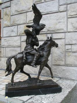 HUNTER falconer on horseback - LARGE BRONZE FIGURE by Christopher Fratin