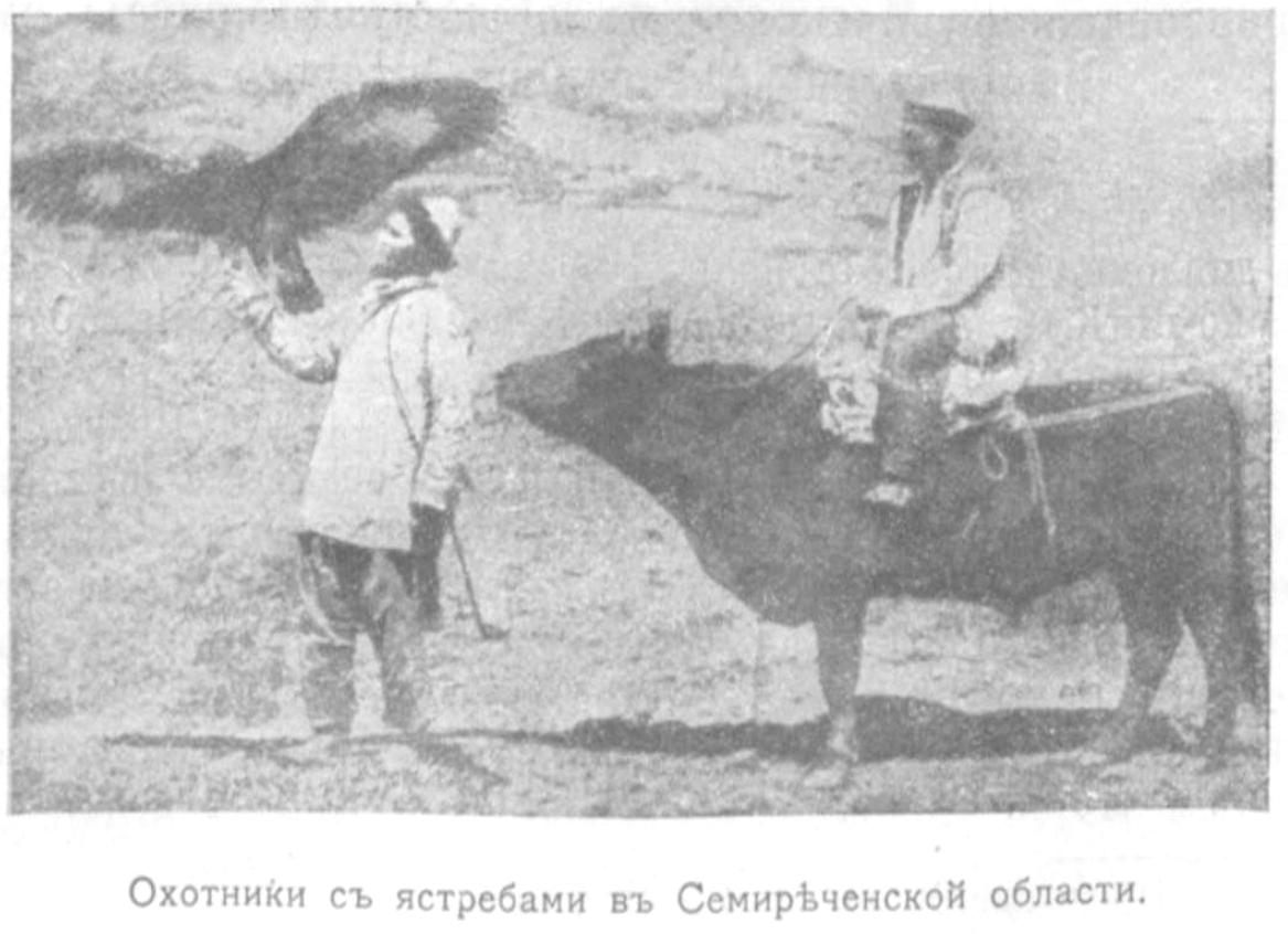 Hunters with hawks (eagles). Semirechyenskaya Oblast (Russian Hunt magazine, 1911, No. 1, p. 4)