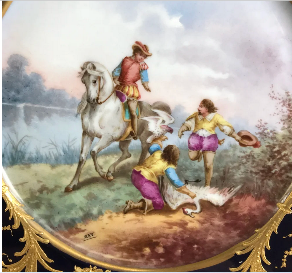 19th Century Severs Porcelain Plate w/ Falconry Scene $350.00 Measures 9.75” x 1”