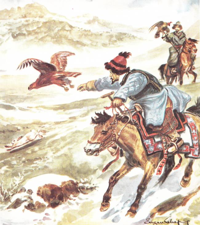 Kyrghyz falconer from publication by Georgiy P. Dementiev (1936)