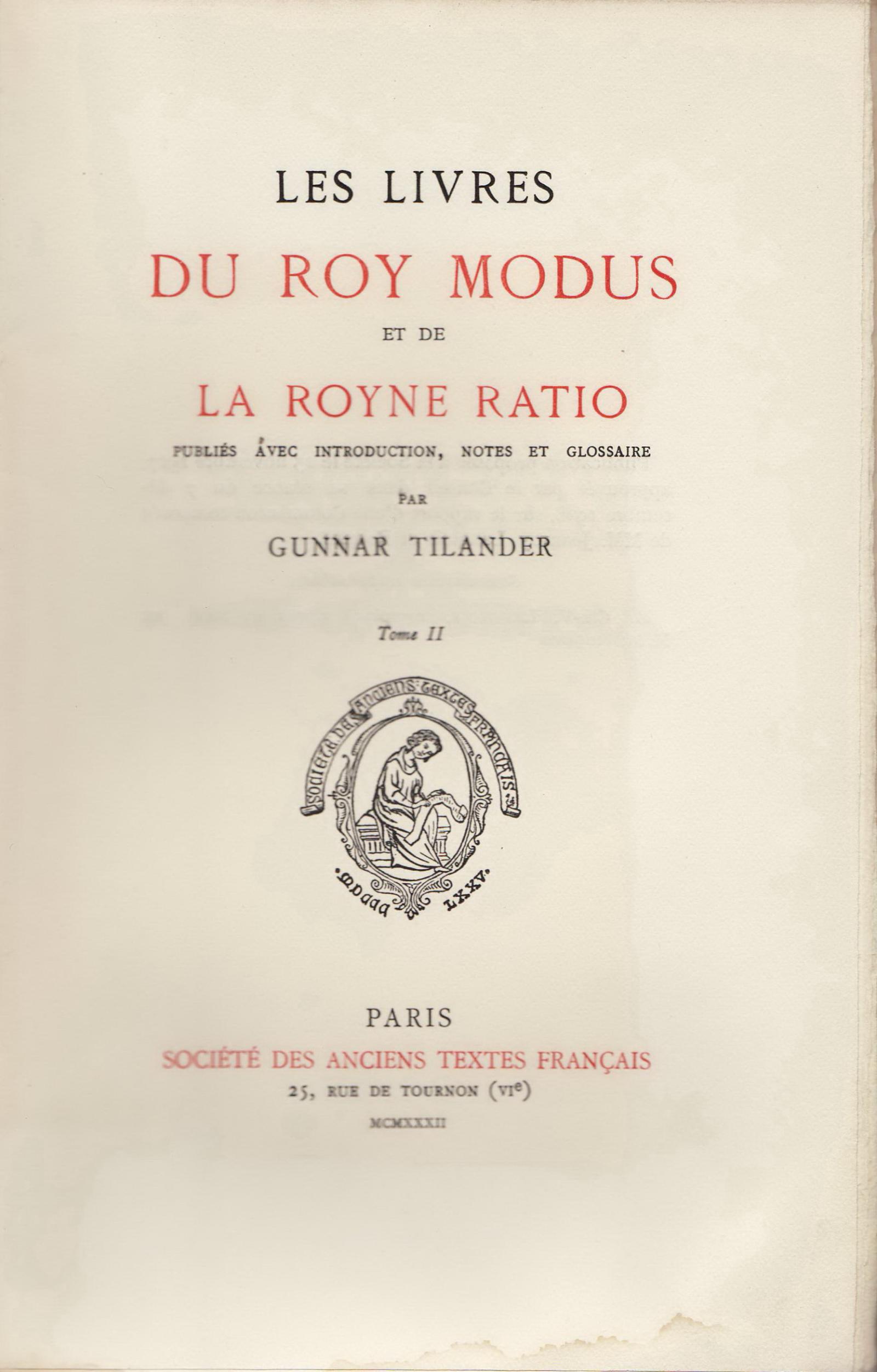 LES LIVRES DU ROY MODUS ET DE LA ROYNE RATIO - Tome I and II