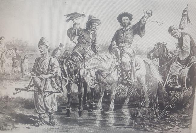 Mongolian Chiefs at the Royal Sport of Falconry at Dalay Nov Lake by Paul Frenzeny