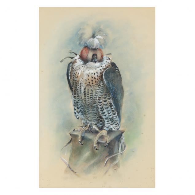 Norman Orr (Scottish, 1924-1993), Perched Hunting Falcon