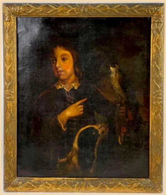 Portrait of the young King Louis XIV on horse with falcon departing for the hunt, 1647