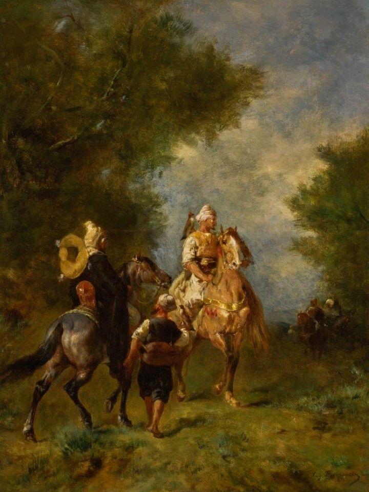 Set of paintings on falconry by French artist Eugene Fromentin (1820-1876)
