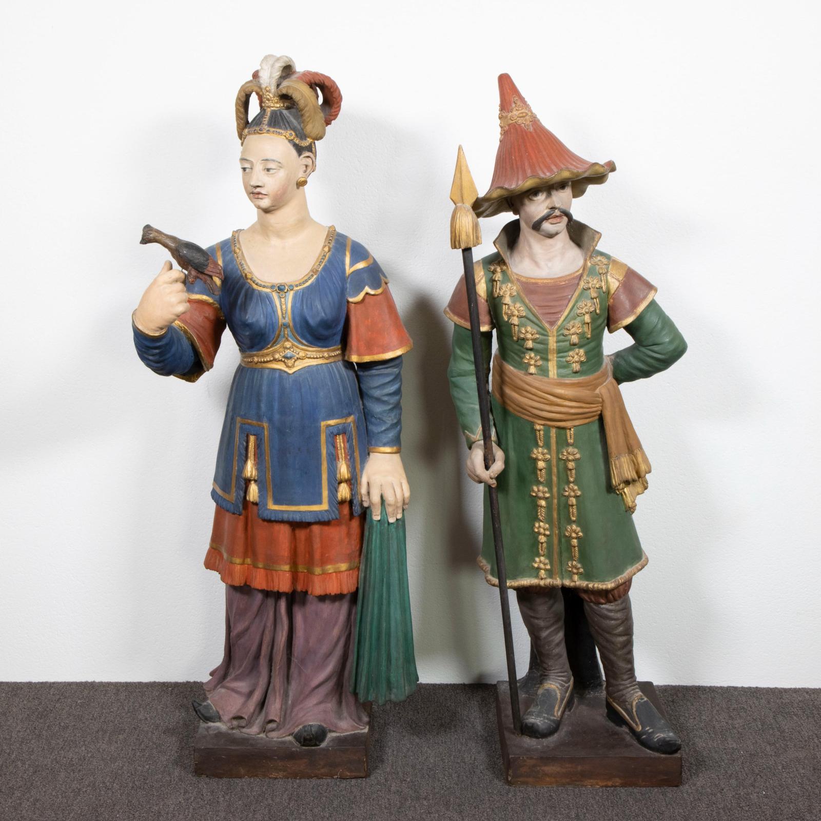 Terracotta garden statues with original polychromy from the orangery of the castle of Eksaarde. The falconry, first half of the 19th century