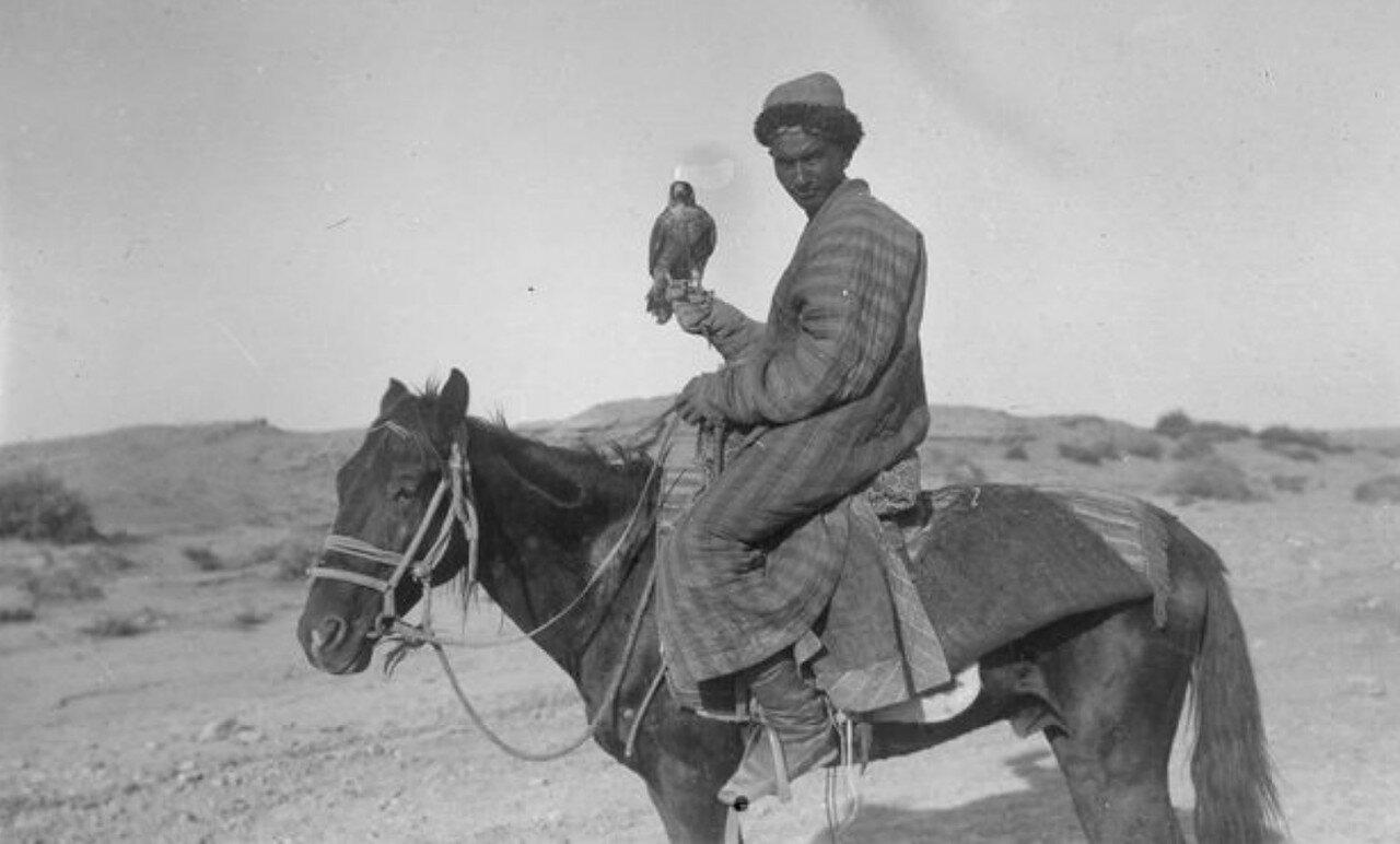 Kirghiz hunter with a hawk in vicinities of Jarkend (1906) by C.G.Mannerheim