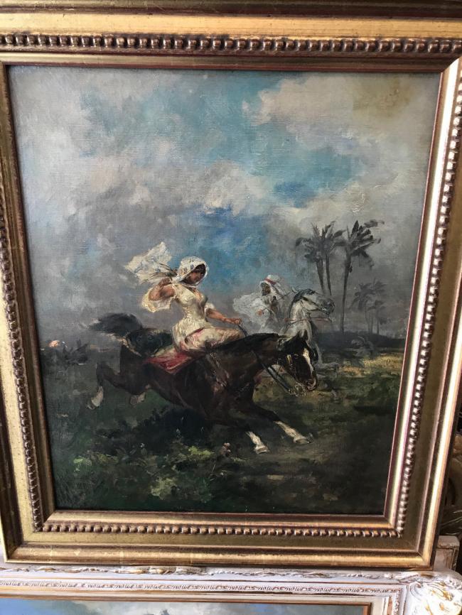 Lady-Falconer on Horse with Bedouin by German Artist Gustav Eggena (1850-1915)