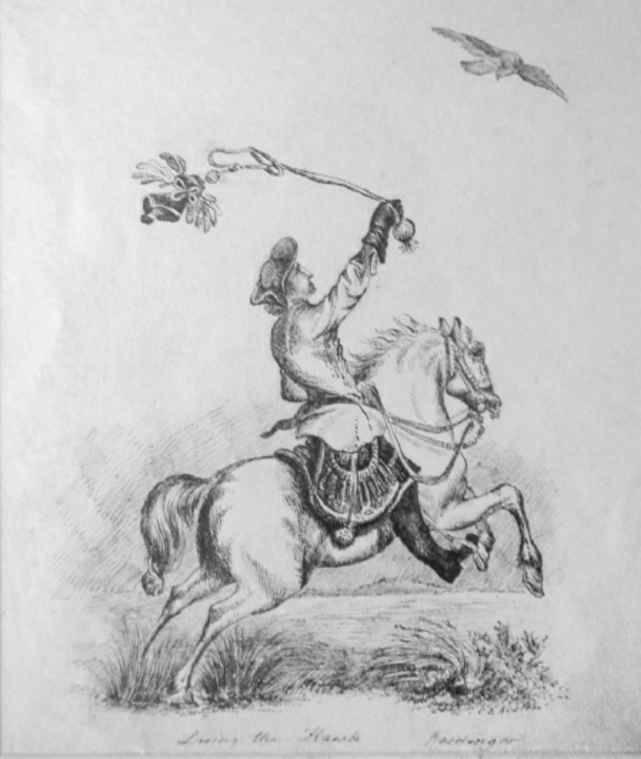 Loosing the hawk, a drawing by Cassandra Austen (1773-1845)