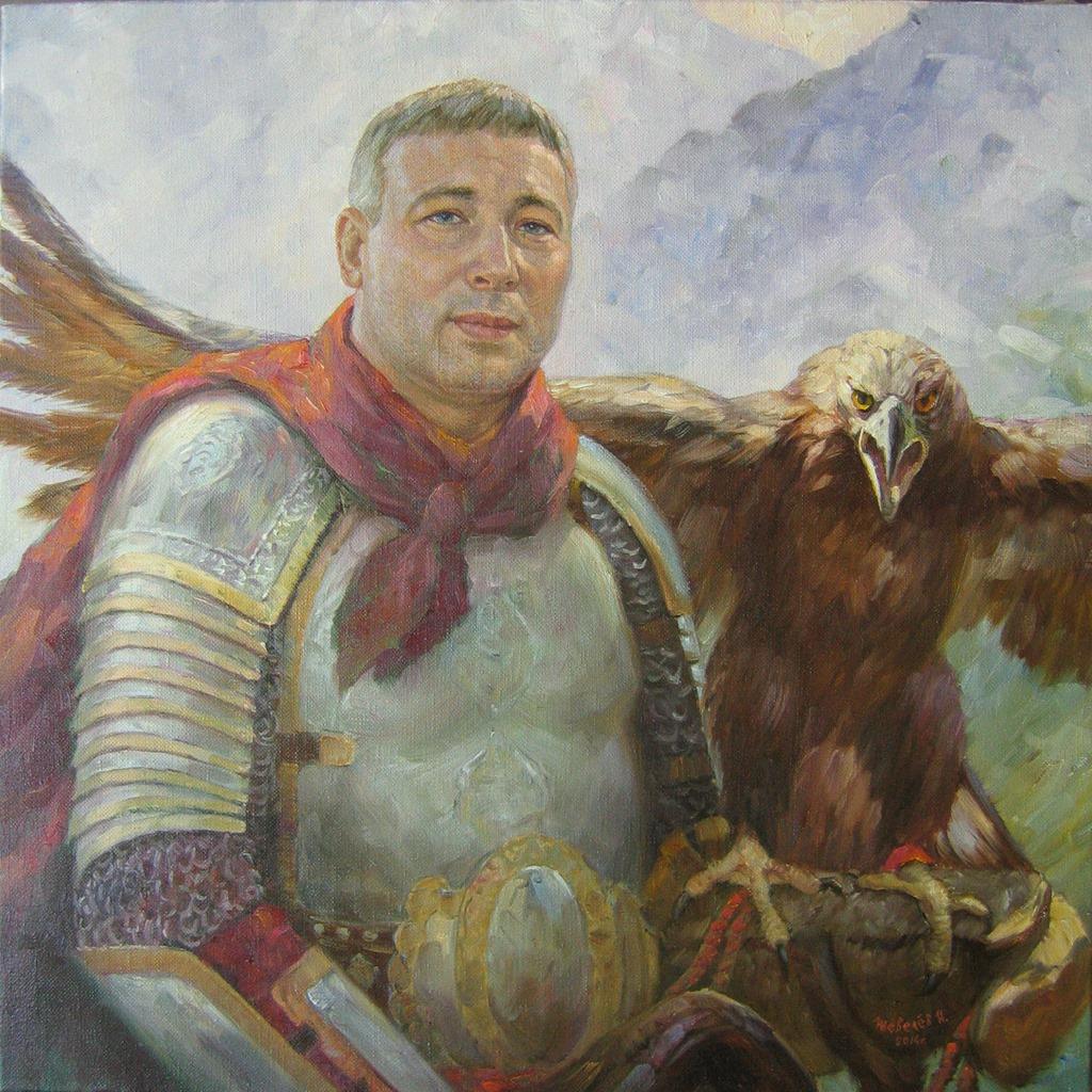 Man's portrait with GE by Igor Shevelev made in 2014, 75x75 cm, canvas, oil