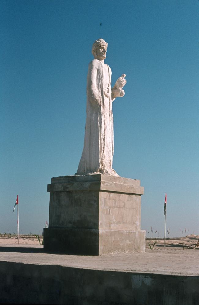 Monument to falconer in Abu Dhabi in the UAE in 1976