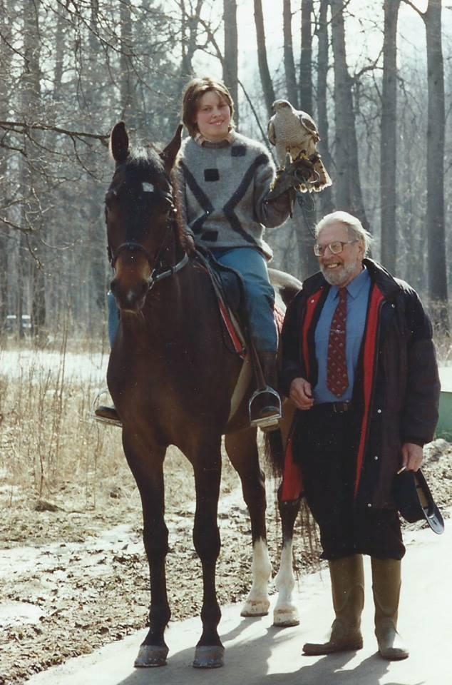 Rider and falconer Nadejda Mikhailova and Prof Vladimir Evgenievich Flint in 2002
