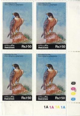 Shaheen Falcon (Falco peregrinus peregrinator) from Pakistan issued in 1986