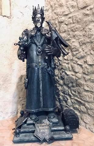 Statue of falconer and his dog in Buda Royal Palace in Budapest in Hungary