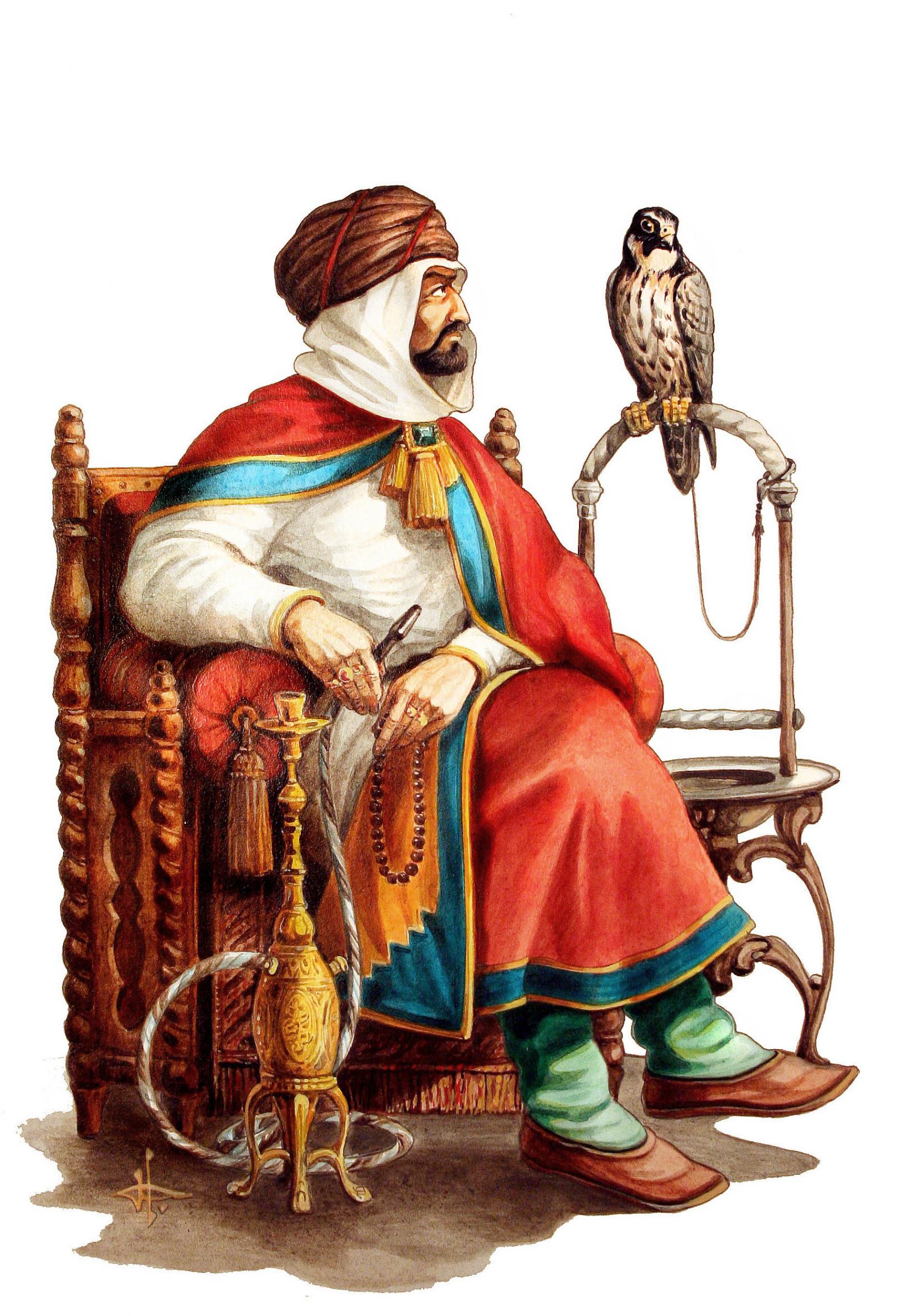 The Arab sheikh with a falcon by Alexander Degtev