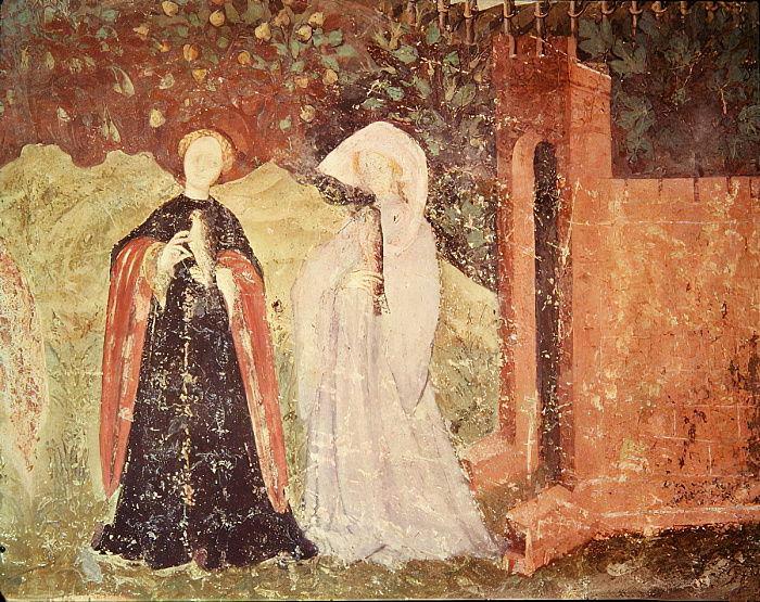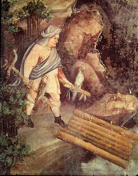 The Month of September, detail of a rider with a falcon, c.1400 (fresco)