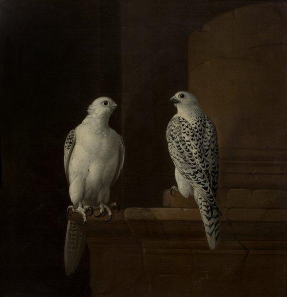 Two Iceland falcons by Bogdany, Jakob (Hungarian painter, ca.1660-1724)